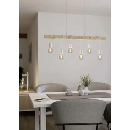Eglo Pendant Townshend Steel White Wood | IP20 - Suitable for 6x E27