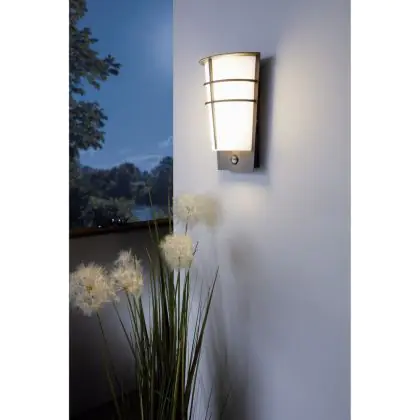 Eglo Wall Light Breganzo 1 Steel Silver 2W 230lm - 830 Warm White | IP44 - Motion and Light Sensor