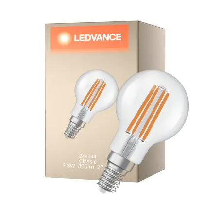 Ledvance Classic LED E14 Ball Filament Clear 3.8W 806lm - 827 Extra Warm White | Replaces 60W