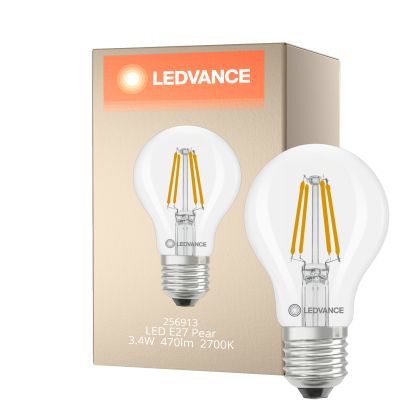 Ledvance Classic LED E27 Pear Filament Clear 3.4W 470lm - 827 Extra Warm White | Replaces 40W