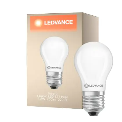 Ledvance Classic LED E27 Pear Frosted 1.8W 250lm - 827 Extra Warm White | Replaces 25W