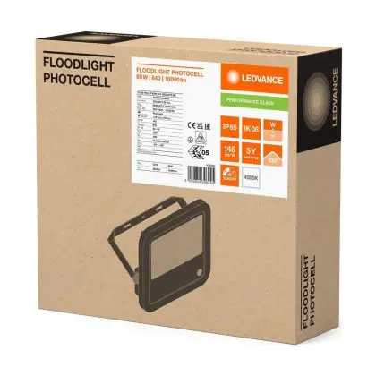 Ledvance LED Floodlight Aluminium Black 69W 10000lm 100D - 840 Cool White | IP66 - Light Sensor - Symmetrical