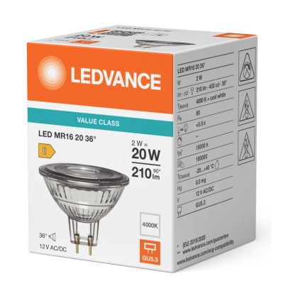 Ledvance LED MR16 P LED Reflector GU5.3 PAR16 2W 210lm 36d - 830 Warm White| Replaces 20w
