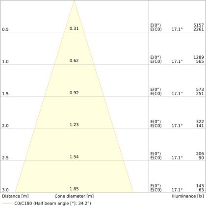 ![]() The colour code is a combination of colour rendering (CRI) and light colour (Kelvin). The first number indicates the colour rendering (1 = very poor colour rendering, 9 = maximum colour fastness). The second and third number contains the light colour. Example: the colour code 830 consists of good colour rendering (8) and warm white light (3000K). |