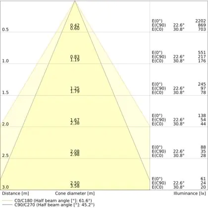 ![]() The colour code is a combination of colour rendering (CRI) and light colour (Kelvin). The first number indicates the colour rendering (1 = very poor colour rendering, 9 = maximum colour fastness). The second and third number contains the light colour. Example: the colour code 830 consists of good colour rendering (8) and warm white light (3000K). |