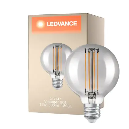 Ledvance Vintage 1906 LED E27 Globe Smoke 11W 500lm - 818 Extra Warm White | Dimmable - Replaces 42W
