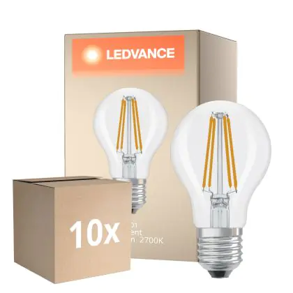 Multipack 10x Ledvance Classic LED E27 Pear Filament Clear 5.9W 806lm - 827 Extra Warm White | Dimmable - Replaces 60W