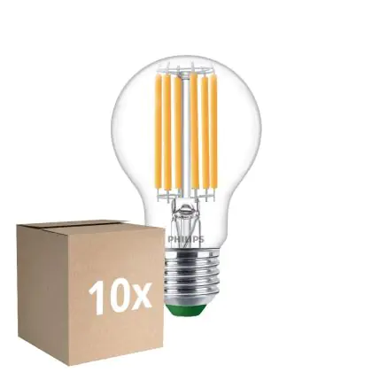Multipack 10x Philips MASTER LED Bulb Ultra Efficient E27 Pear Clear 5.2W 1095lm - 830 Warm White | Replaces 75W