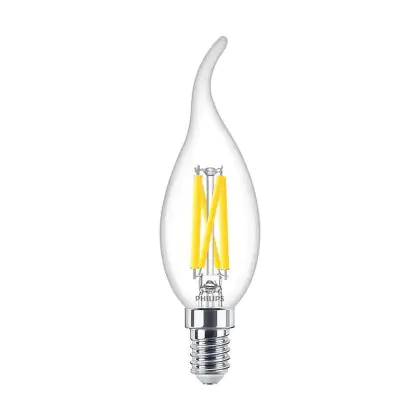Multipack 10x Philips MASTER LED E14 Bent-tip Candle Filament Clear 3.4W 470lm - 922-927 Dim To Warm | Best Colour Rendering - Dimmable - Replaces 40W