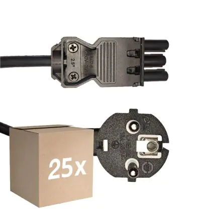 Multipack 25x Noxion GST - Compatible Supply Cable Black - Female + Schuko Europlug - 2m - 3 pole 0.75mm2
