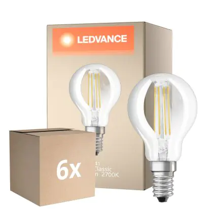 Multipack 6x Osram Classic LED E14 Ball Filament Clear 5.5W 806lm - 827 Extra Warm White | Dimmable - Replaces 60W