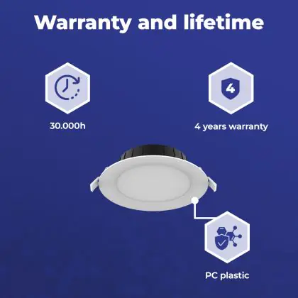 The lifespan is an indication of the number of hours a product will last. This refers only to the hours the product is actually on. LED lighting has a significantly longer lifespan than conventional lighting. LED lighting therefore lasts much longer. How long you can actually use a product depends on the extent of its (daily) use. |