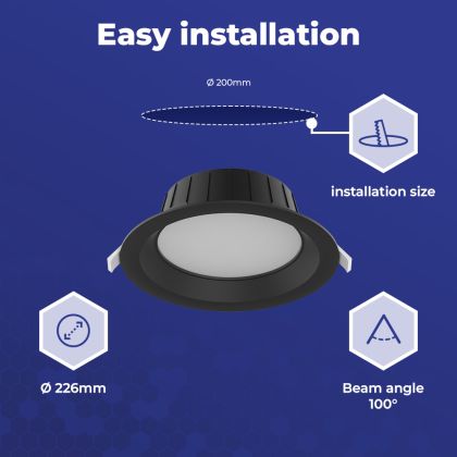 | Manufacturer Name | Noxion LED Downlight Hera Medium Recessed Black 21W 2400lm - 827-840 CCT | 226mm - Cutout 200mm | |