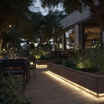 Lighting with a sensor only turns on when it receives a specific signal. This reduces energy costs. The (built-in) sensors respond to darkness (twilight switch) and/or movement (motion sensor).