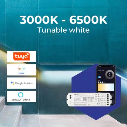 This number indicates how many LED lighting points there are per metre on the LED strip. The rule is: the more LEDs per metre, the more powerful the light/light output.