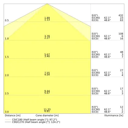 ![]() The colour code is a combination of colour rendering (CRI) and light colour (Kelvin). The first number indicates the colour rendering (1 = very poor colour rendering, 9 = maximum colour fastness). The second and third number contains the light colour. Example: the colour code 830 consists of good colour rendering (8) and warm white light (3000K). |