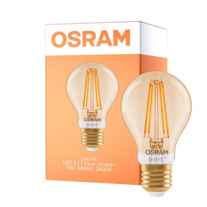 Osram Smart+ Matter E27 Pear Filament Gold 6W 680lm - 824 Extra Warm White | Dimmable - Via Smart Device Only - Replaces 60W