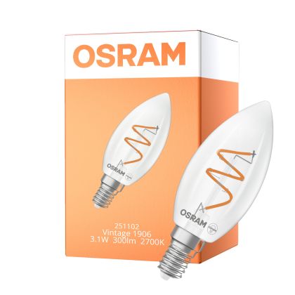Osram Vintage 1906 LED Classic Slim E14 Candle Filament Clear 3.1W 300lm - 927 Extra Warm White | Best Colour Rendering - Dimmable - Replaces 25W