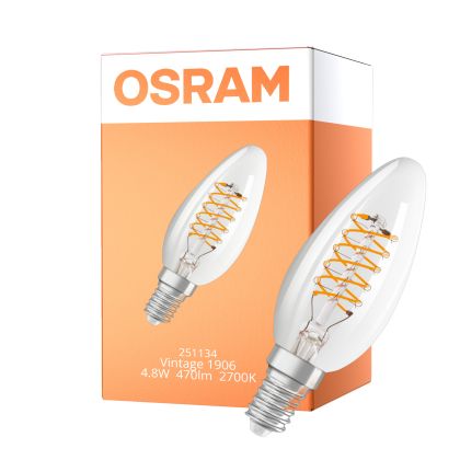 Osram Vintage 1906 LED Classic Slim E14 Candle Filament Clear 4.8W 470lm - 827 Extra Warm White | Dimmable - Replaces 40W