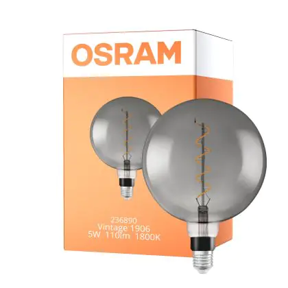 Description Osram Vintage 1906 LED E27 Globe Filament Smoke 200mm 5W 110lm - 818 Extra Warm White | Dimmable - Replaces 25W