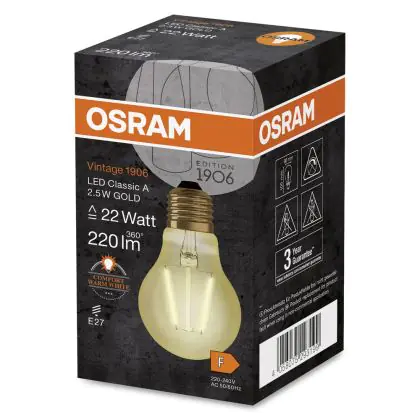 | Manufacturer Name | Vintage 1906 LED CL A FIL GOLD 22 non-dim 2,5W/824 E27 | |